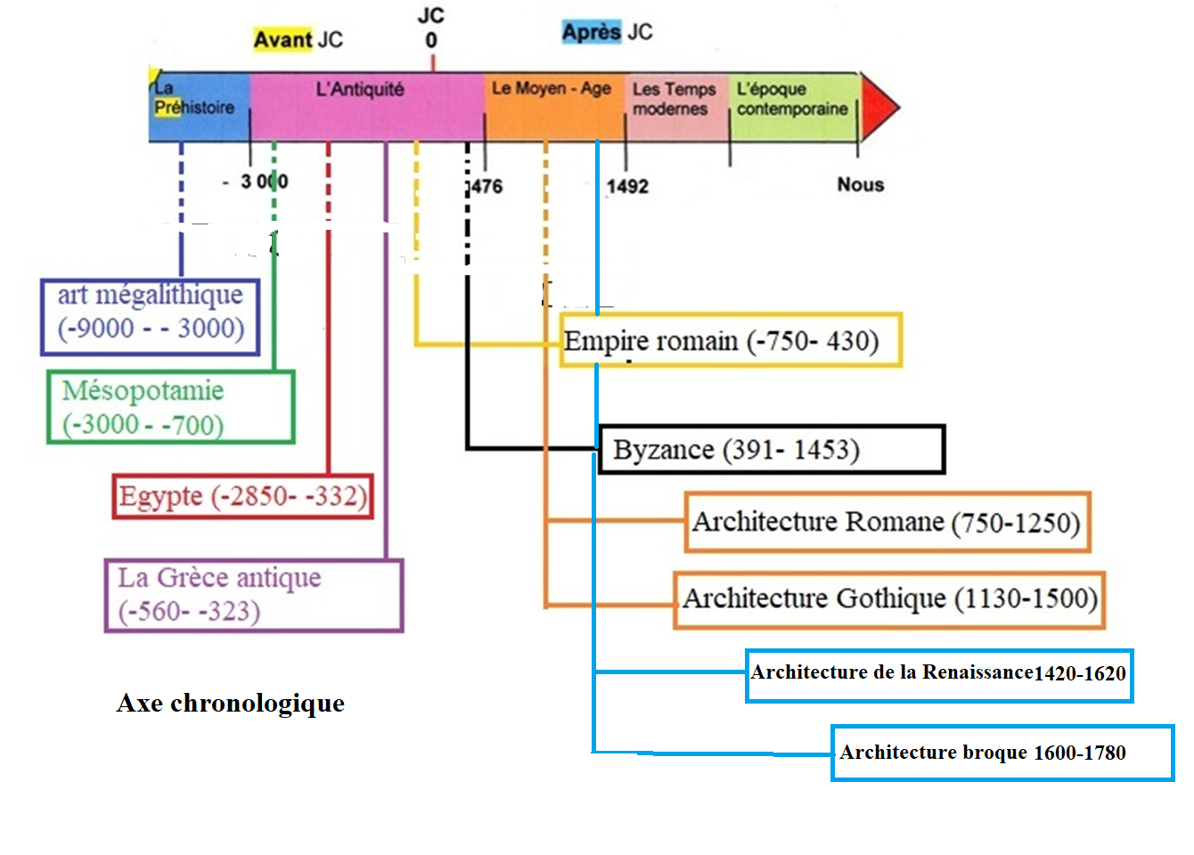 Through the history of architecture course, the student is confronted with a combination of event history, civilizations, and the evolution of techniques and design.