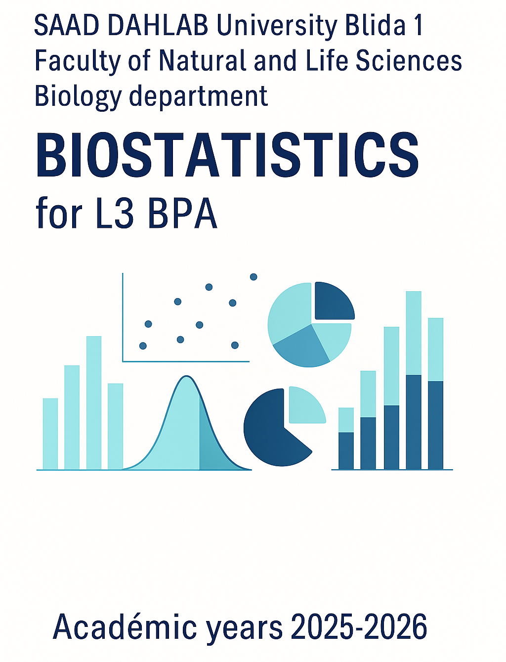 L'objectif général de cet enseignement est de démontrer l'intérêt de l'analyse statistique des données expérimentales en biologie. La matière donnera aux étudiants les éléments de probabilités essentiels à la compréhension et à la manipulation efficace des raisonnements, des concepts et des outils statistiques.